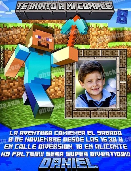 Celebra el día más especial del año para ti invitando a todo el mundo con unas invitaciones que no pasen desapercibidas. 15-mar-2019 - Explora el tablero de Rocio Reyes Bustamante CumpleaÃos con tema de minecraft en Pinterest.