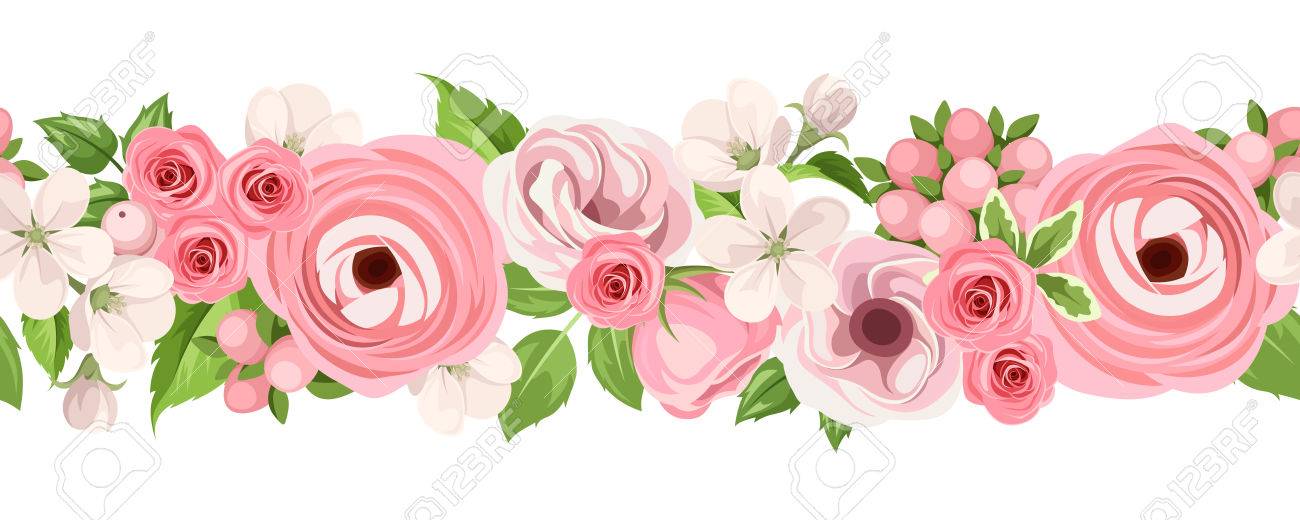 Fondo Transparente De Vector Horizontal Con Rosas De Color Rosa Lisianthuses Ranunculos Y Flores De Manzana Sobre Un Fondo Blanco Ilustraciones Vectoriales Clip Art Vectorizado Libre De Derechos Image 56884527