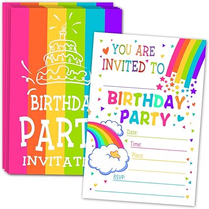 Amazon Com Invitaciones De Fiesta De Cumpleanos Con Sobres De Arcoiris Invitaciones Coloridas Para Fiestas Infantiles 30 Tarjetas Con Sobres Hogar Y Cocina