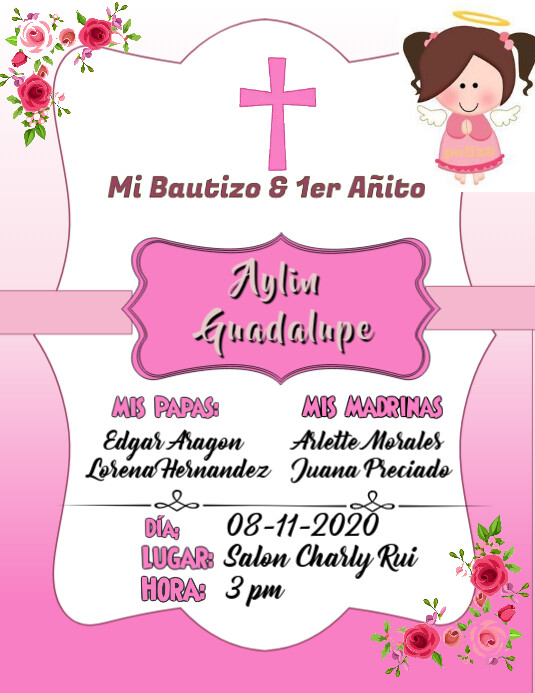 Tarjeta De Invitacion De Bautizo De Nina Modelo Postermywall